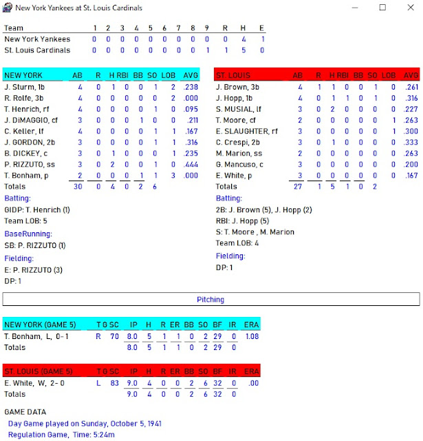 And with that, the 1941 BBW replay is now completed. It is now time to make sure everything is backed up and saved, and it is time to begin to work on 1920 for my next project. Once 1920 is completed, this means I will have completed BBW replays of the following seasons: 1901, 1911, 1920, 1930, 1941, 1949, and 1957. This allowed me to get a more-or-less once-a-decade snapshot of the league as it evolved through the first half of the century. What's next? Well, let me finish 1920 first, but after that, stay tuned.